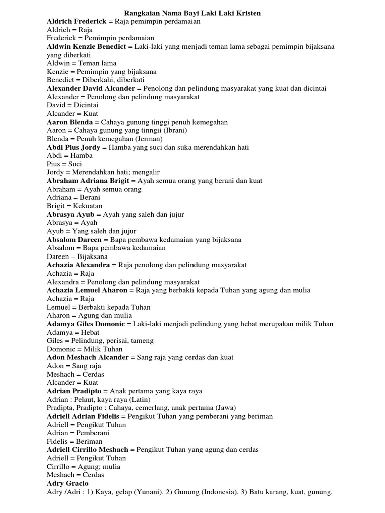 Salah satu persiapan yang tak boleh disepelekan adalah persoalan nama. Buat ibu bapa yang beragama kristian di sini kami sediakan pilihan 100 nama bayi lelaki kristian yang boleh dijadikan rujukan untuk nama bayi anda Gentle Protection Against. Beberapa Kisah Mengenai Pemberian Nama Yang Terdapat Dalam Alkitab.
